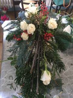 Roses, santinis & Lisanthus en complément,